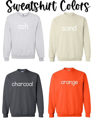 A unisex fit sweatshirt option is also available. Sweatshirt brand will be Gildan or Jerzees and depend solely on stock available.