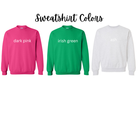 A unisex fit sweatshirt option is also available. Sweatshirt brand will be Gildan or Jerzees and depend solely on stock available.
