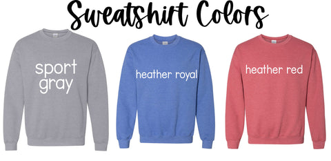 A unisex fit sweatshirt option is also available. Sweatshirt brand will be Gildan or Jerzees and depend on stock available.